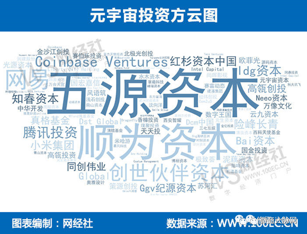 元宇宙的爆火也引来众多投资机构入局。《报告》显示,元宇宙活跃投资方包括五源资本、顺为资本、知春资本、高瓴创投、红杉资本元宇宙资本、万像文化等VC/PE,以及网易、阿里巴巴、腾讯等产业资本。