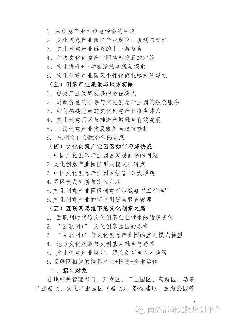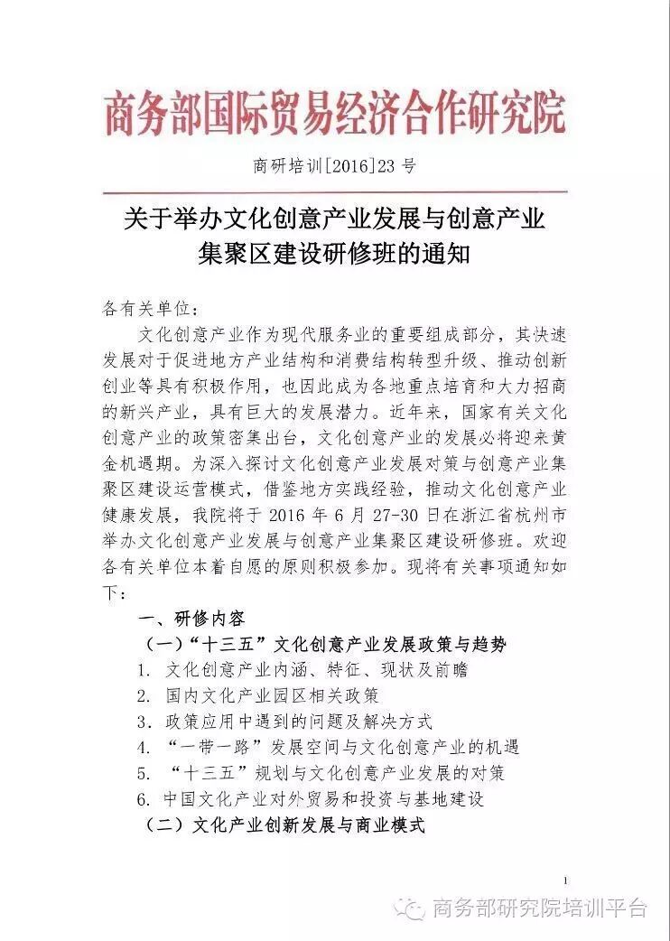 关于举办文化创意产业发展与创意产业 集聚区建设研修班的通知