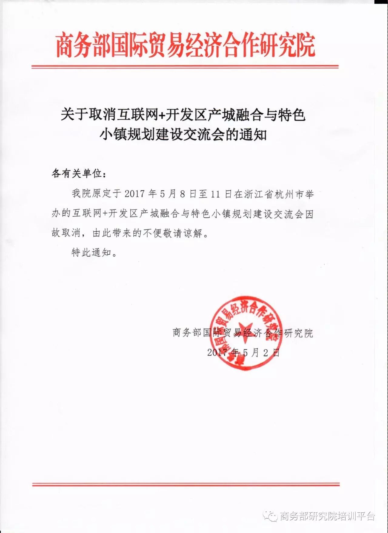 导读:关于取消互联网+开发区产城融合与特色小镇规划建设交流会的通知