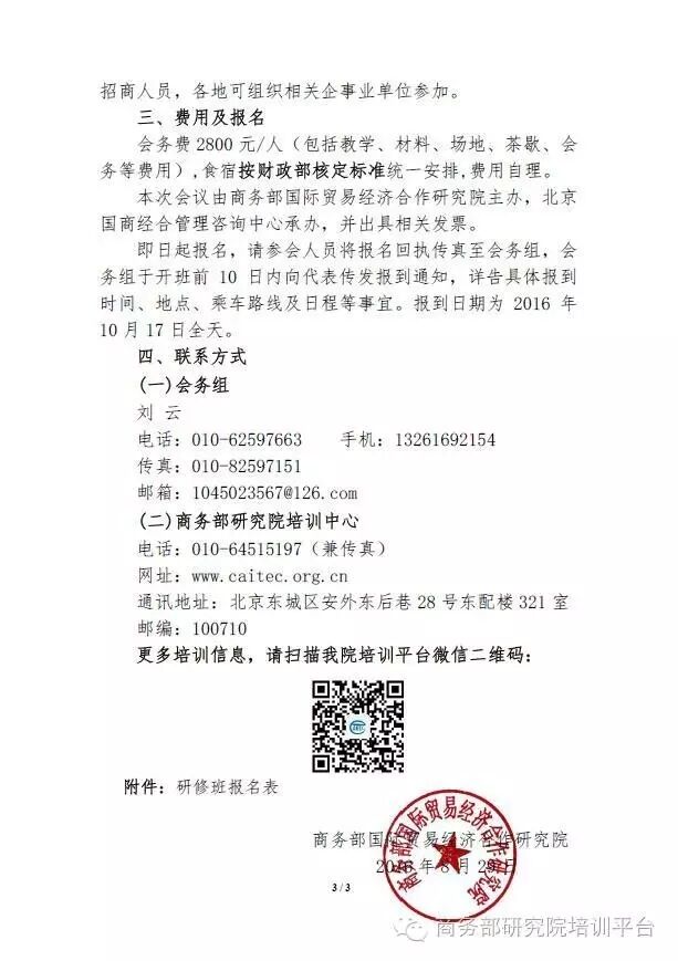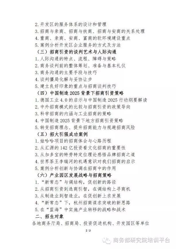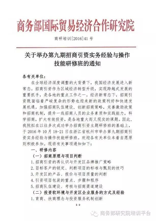 商务部研究院2016年10月份培训项目 关于举办第九期招商引资实务经验与操作技能研修班的通知