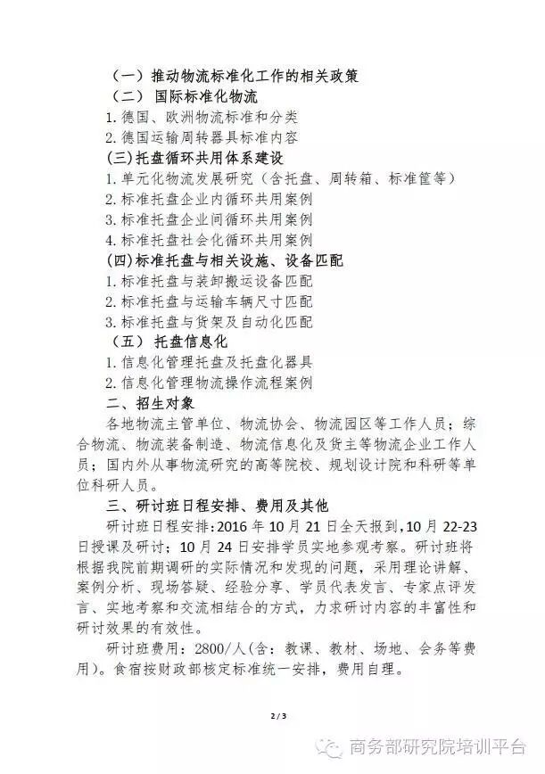 导读:关于举办第三期标准托盘循环共用推动中国物流体系建设高级研讨班的通知