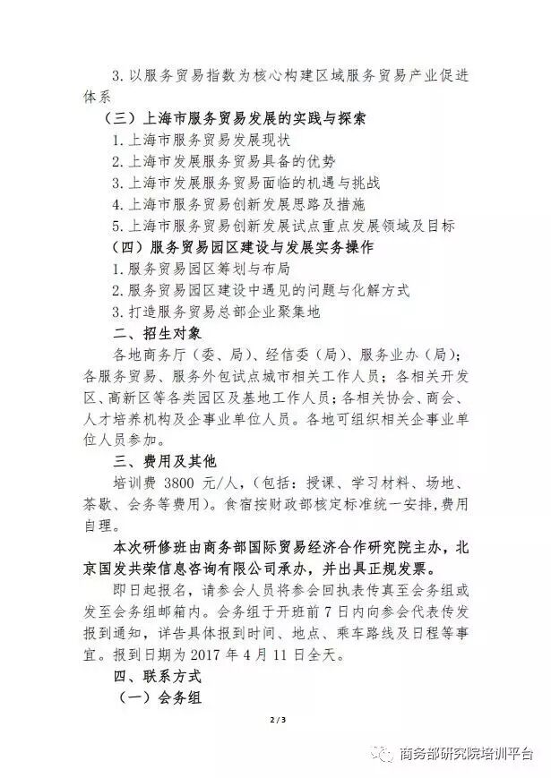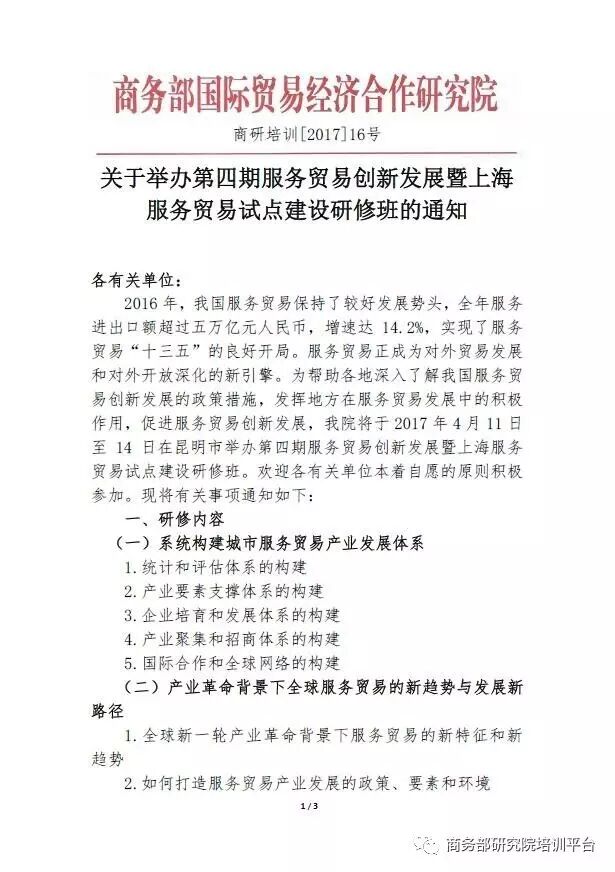 导读:关于举办第四期服务贸易创新发展暨上海服务贸易试点建设研修班的通知