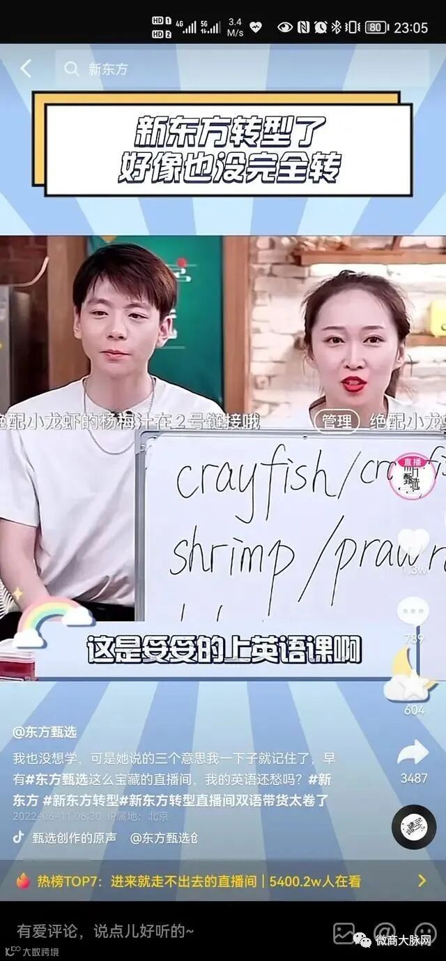 前两天无意中走进直播间,看到了创始人俞敏洪和董宇辉的同框,老板和员工的标签以及俞敏洪各种“刁难”都让人称方老师的董宇辉化解了,整个氛围非常的令人舒适,大有看相声的意味,满满的弹幕都是说不要停下来,继续“互怼”。就比如方老师对俞敏洪说,“忍一时风平浪静为什么不是你忍?退一步海阔天空为什么不是你退?”二人的风趣互动基本可以做到场场直播人数10万+,异常火爆。