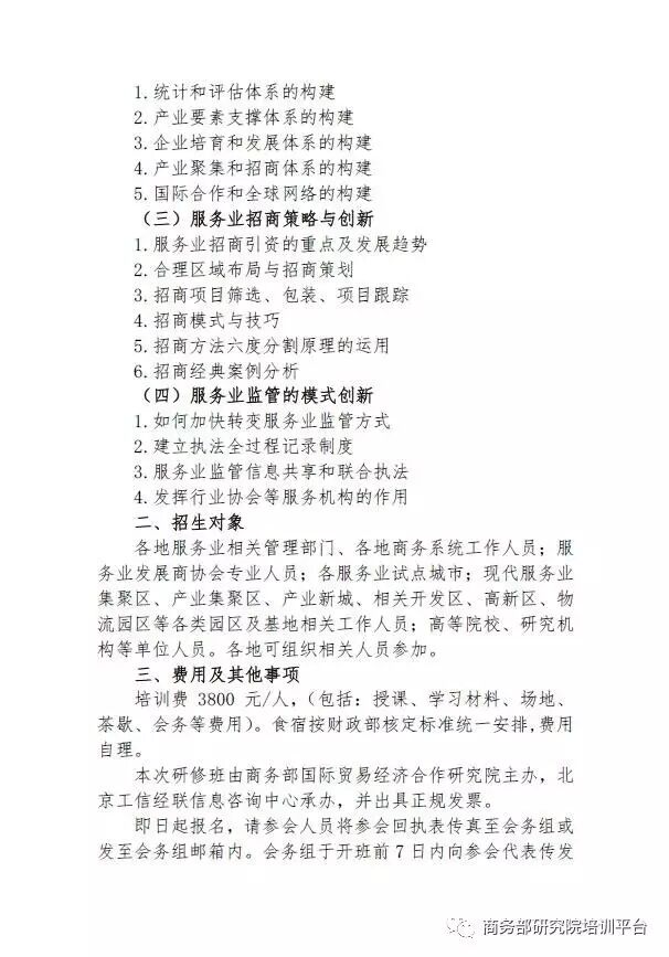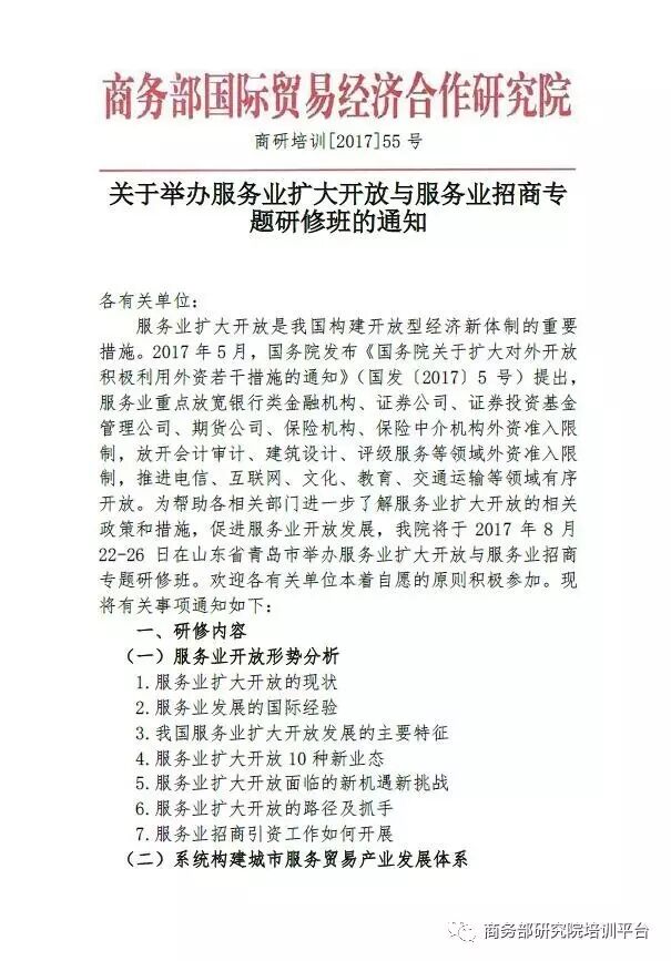 导读:关于举办服务业扩大开放与服务业招商专题研修班的通知