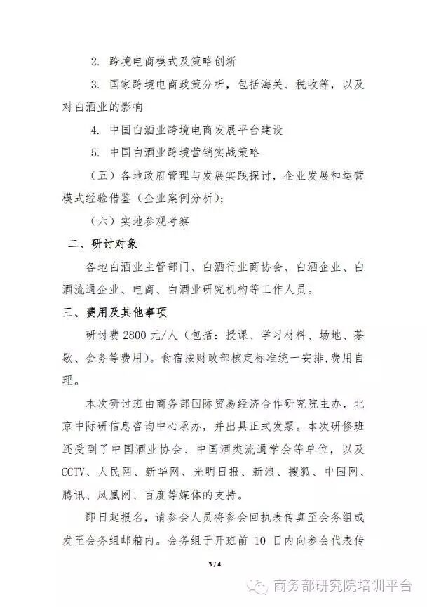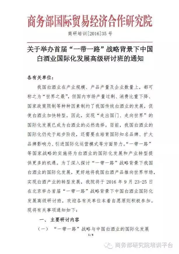 导读:关于举办首届“一带一路”战略背景下中国白酒业国际化发展高级研讨班的通知