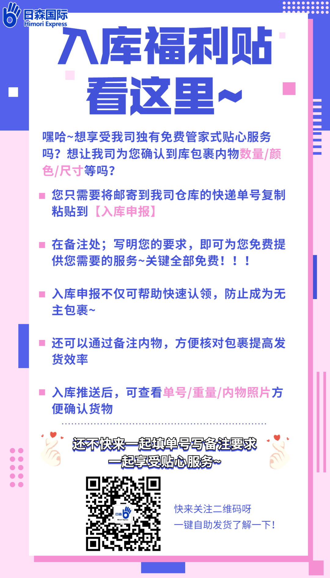 我司为您提供的免费特色拍照核对内务服务,需要大家填写入库申报,备注您的入库要求,写明拍照或者核对尺寸颜色不拆等要求,我司均会为您提供相应服务。