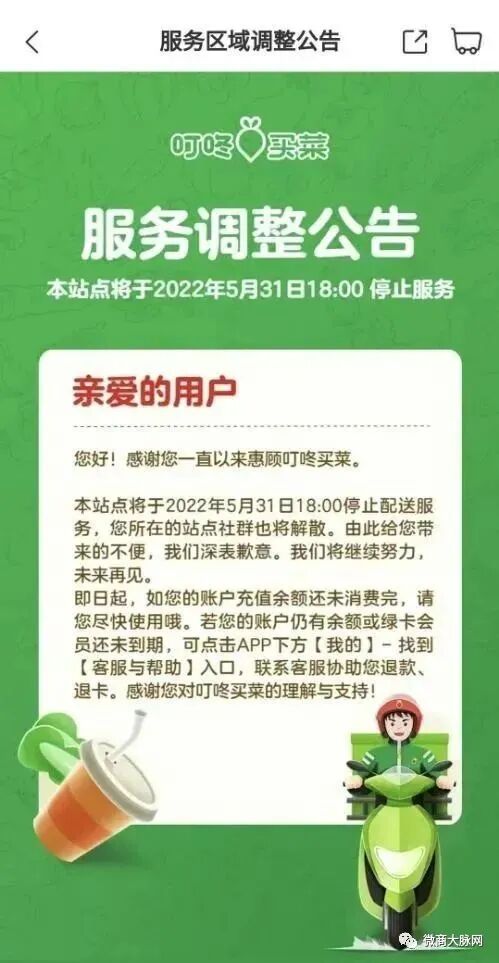 安徽网报道称,有一位电话客服人员告知,他们接到通知,由于运营调整,宣城站点5月31日18:00后将停止服务。对于为何还未到停运时间,App上就已经无法买菜的现象,该客服人员表示,这要看各个门店的情况,有的门店供不上货了,也可能是门店仓库东西已经清完了。