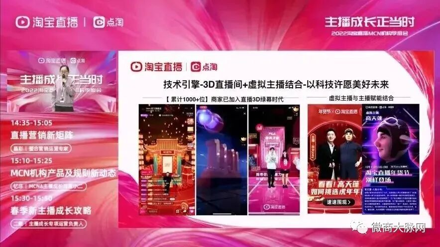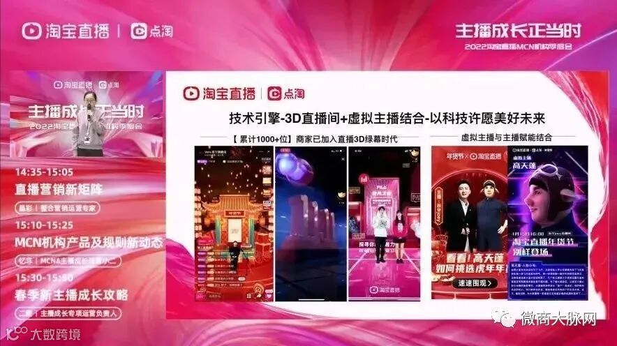 昨日下午,淘宝召开了淘宝直播MCN机构季度会议。该次会议通过线上直播的宣讲形式,淘宝公布了直播的最新政策和玩法。2022年直播营销有三大发力方向,其中虚拟主播和3D场景成为了平台新驱力。