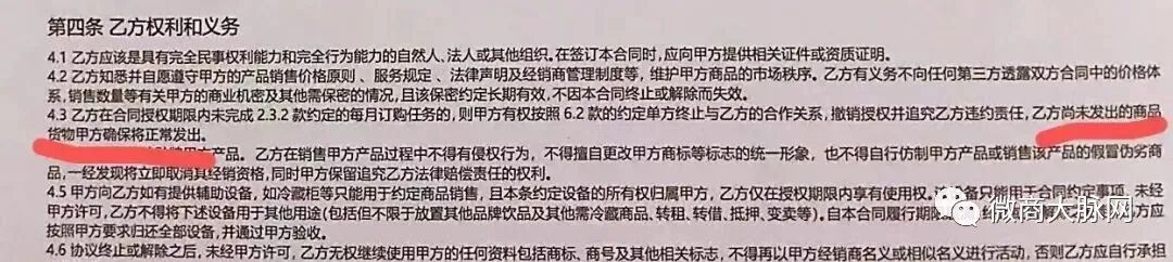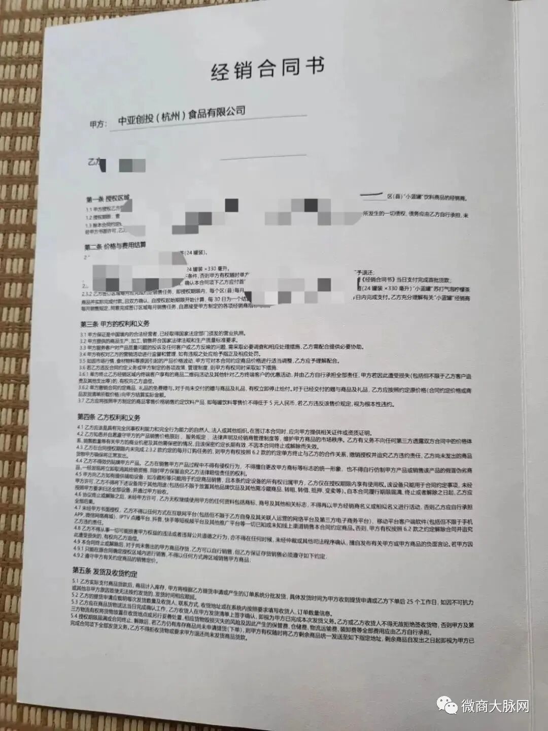 而为何在签合同时没有发现呢?多位经销商透露,当时在成都糖酒会上签的协议并不是正式文件,只是一个简单的预付款协议,正式合同是在成都糖酒会后陆续拿到的。当时他们已经在成都糖酒会上交了部分定金,后期签合同时中亚创投也私下告诉他们只是走形式,具体条款可以商量,再加上娃哈哈的品牌影响力,他们并没有过多顾虑,就签了。