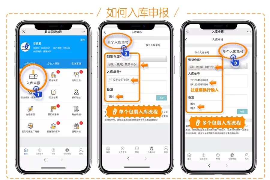 请大家配合将物流单号复制粘贴进行入库申报并填写内物