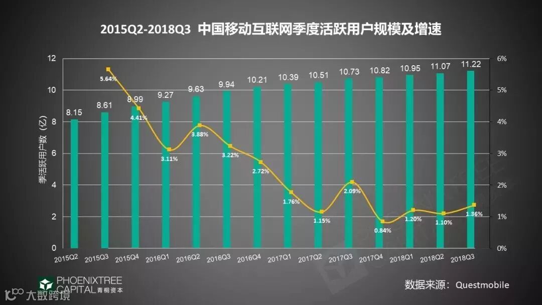 国内互联网用户规模增幅持续收窄,流量增长进入瓶颈期,是中国企业谋求出海的主要动力。Questmobile数据显示,截止2018年Q3中国互联网活跃用户已达11.22亿,前三季度新增用户仅为0.27亿。在人口总量既定、国内互联网竞争白热化的格局下,新增用户流量从哪儿来,是中国互联网企业亟待解决的问题。