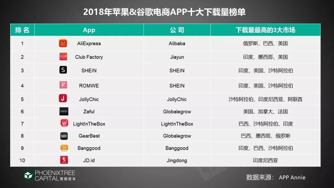 中东和印度是电商出海最关注的区域,SHEIN、Club Factory 、Romwe、JollyChic、Banggood这5家出海电商,其2018年的用户增长主要来自印度以及中东地区的沙特和阿联酋。