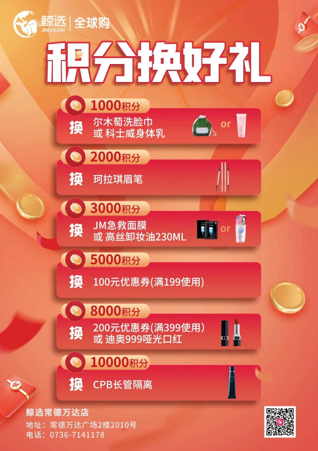 营业地址:鲸选全球购万达店·常德万达广场2楼2010