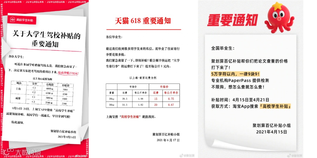 在这一次99大促期间,聚划算的优惠补贴再次升级,在数码、文教和快消等年轻人需求更多的领域,补贴同比翻了3倍。