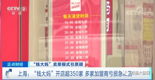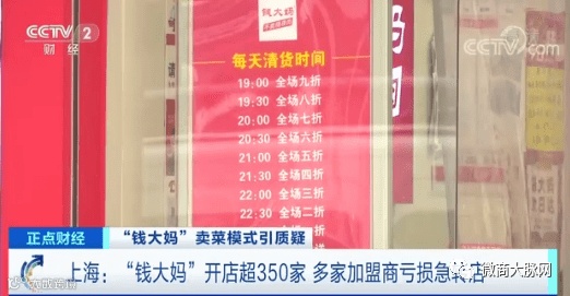 央视财经消息表示,“钱大妈”生鲜店“疯狂”打折模式,其实是消费者“薅了加盟商的羊毛”。