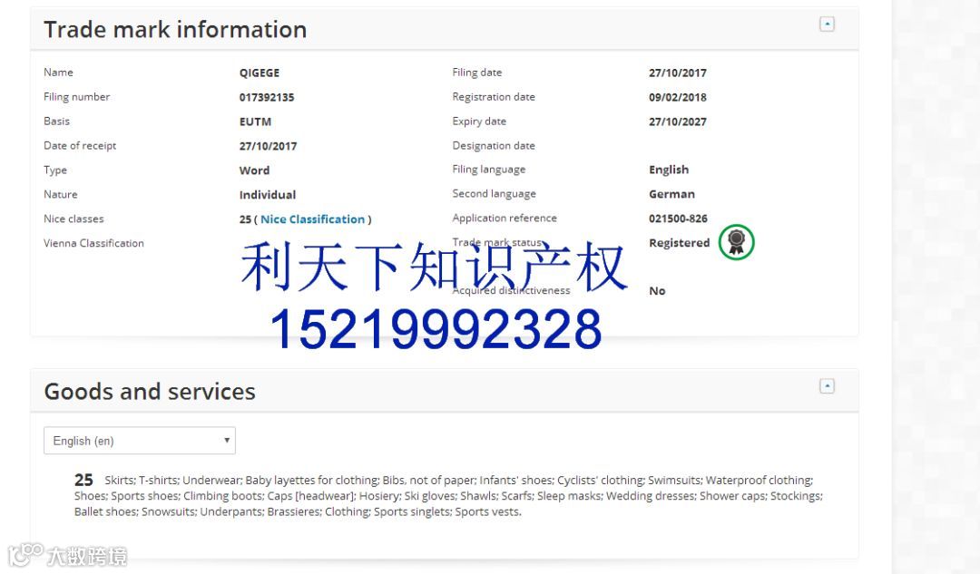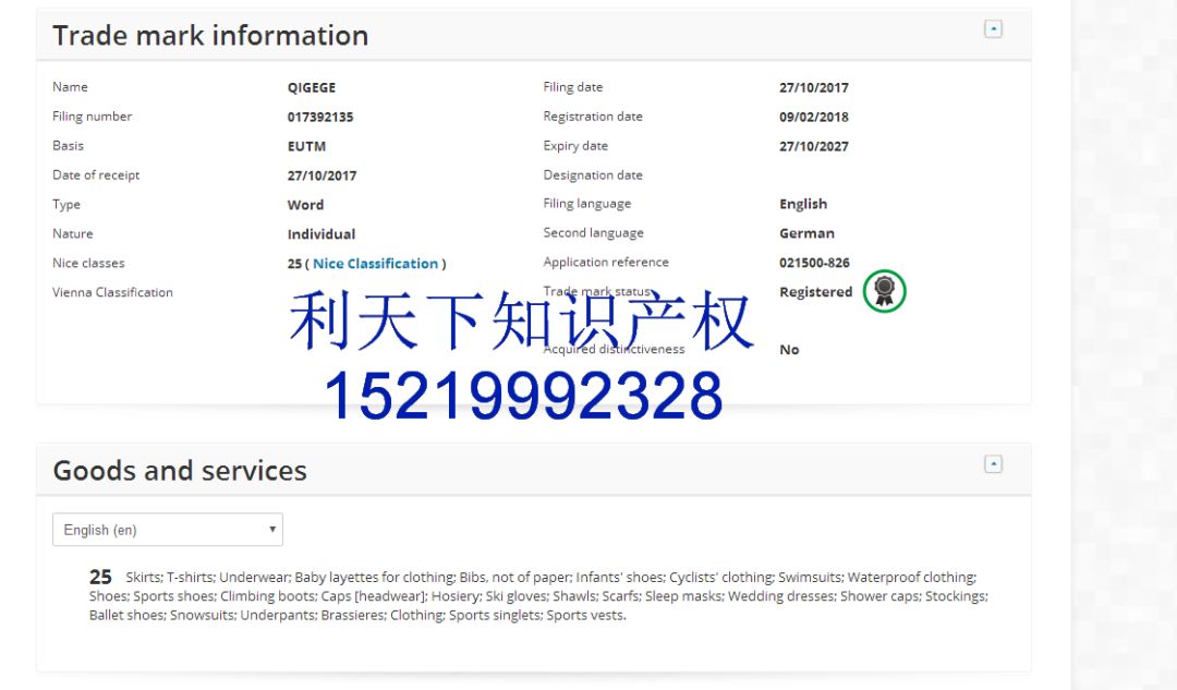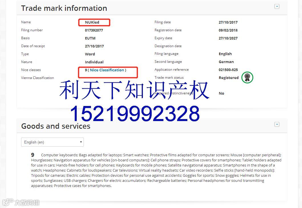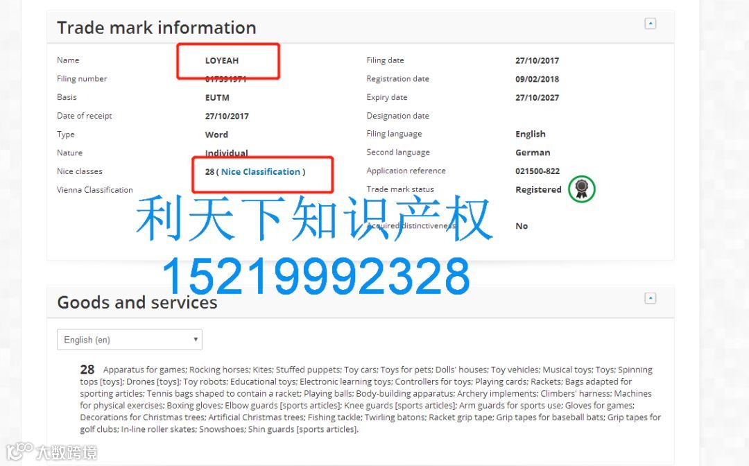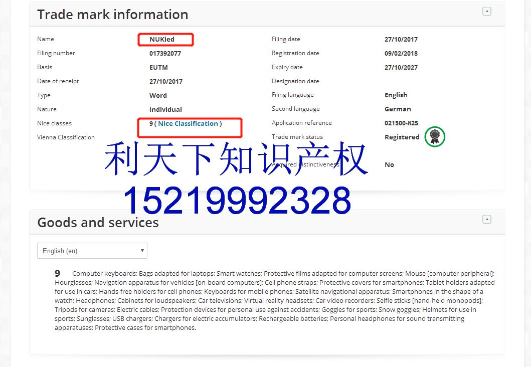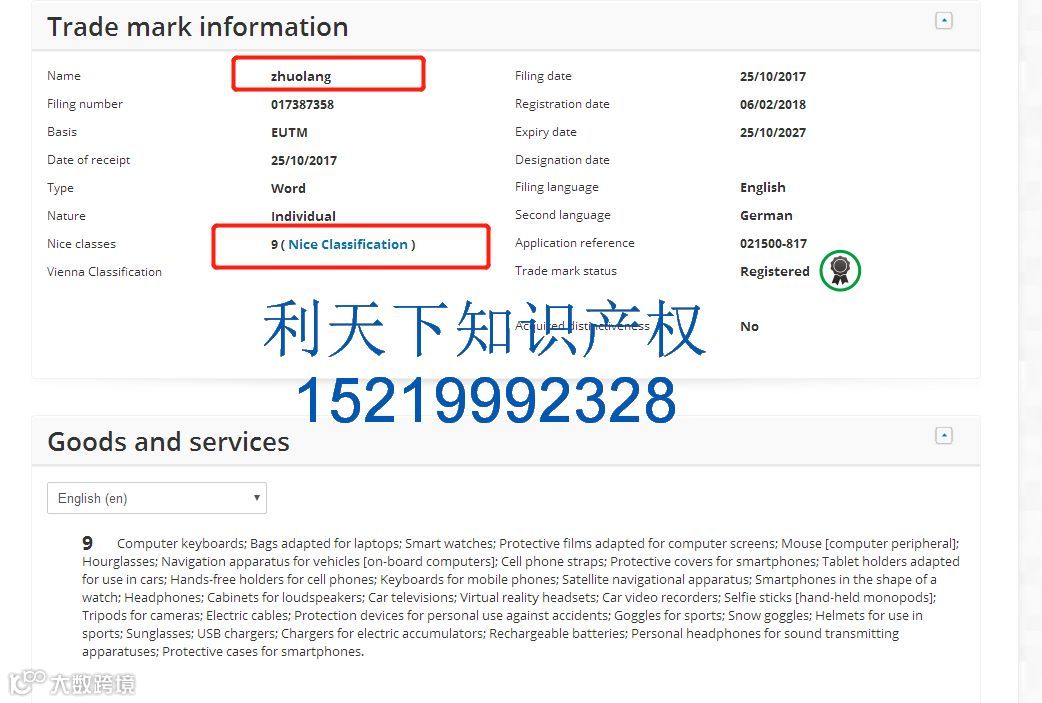 检索品牌名字,查询专利,版权可以找利天下免费检索152 1999 2328微信同号(罗生)