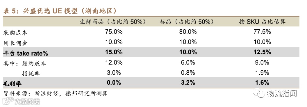 1.兴盛优选UE模型:成本差异来自仓储选址、分拣效率