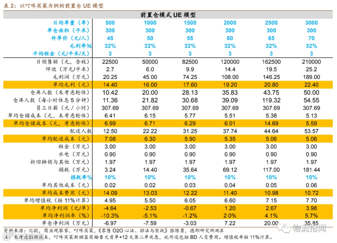 我们以叮咚买菜为例对前置仓进行UE测算,数据主要基于同业经验运营指标,并结合公开的新闻报道综合判断。