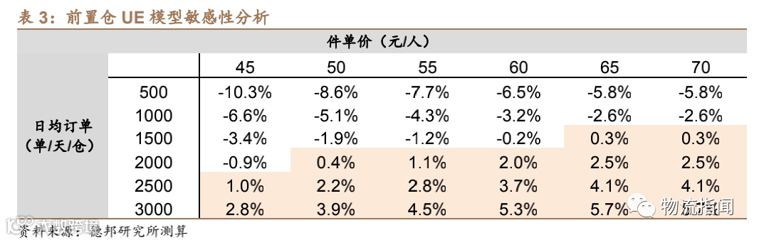 我们测算了单仓日单量在500-3000单共6种情况下,一个标准仓的盈利情况,但具体各仓的盈利情况不一,仍需逐一分析。我们的主要假设包括: