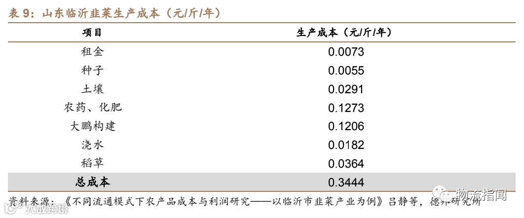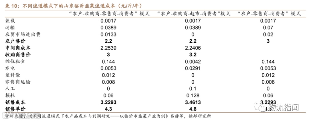 根据《不同流通模式下农产品成本与利润研究——以临沂市韭菜产业为例》吕静等,不同流通模式下的山东临沂韭菜流通成本的具体项目如下: