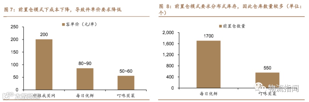 前置仓模式通过分散仓储缩短运输距离,最后一公里不需要冷链车,据虎嗅报道,中心仓冷链成本30元,前置仓冷链成本可以做到15元以下,降幅比例达50%。通过前置仓降低成本,UE跑通条件下件单价要求下降,据易观分析,件单价在70元左右可实现盈亏平衡,每日优鲜目前件单价在80~90元左右,日均订单达800单。