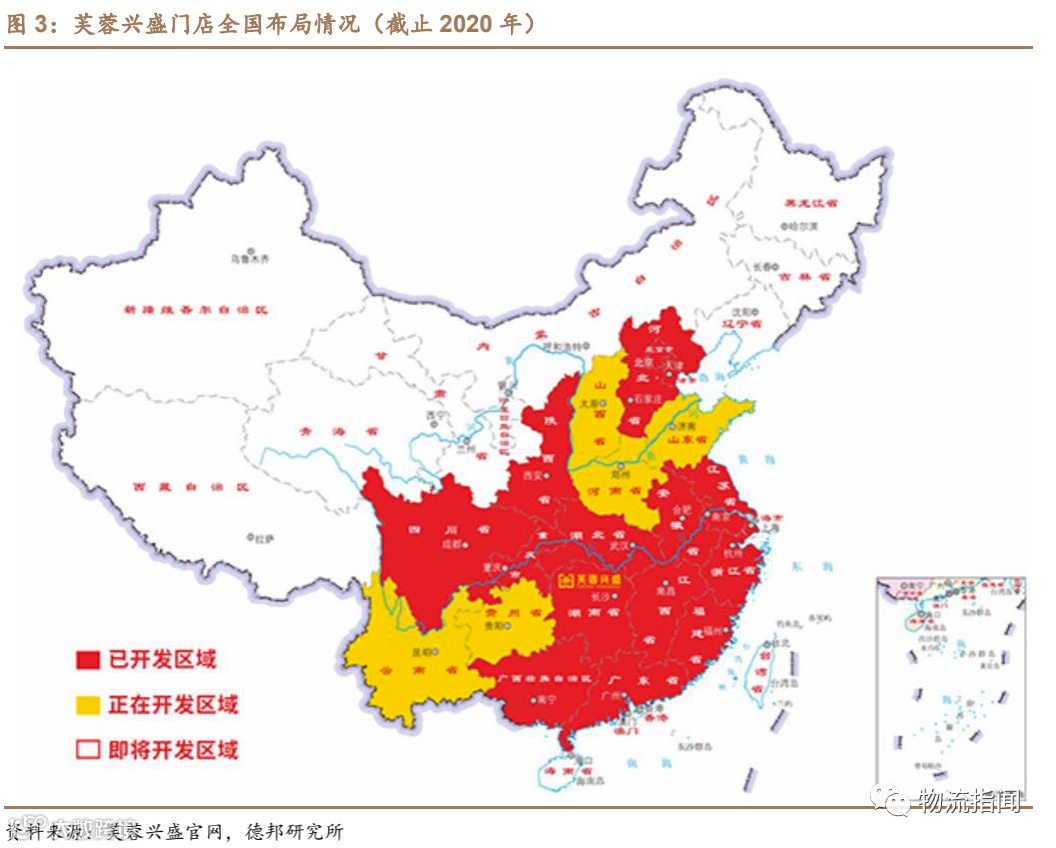 2010年“芙蓉兴盛”已成为长沙覆盖率最高的便利店品牌之一。截止2020年,芙蓉兴盛加盟店已经布局湖南、广东、湖北、江西、浙江、江苏、安徽、重庆、四川、北京、天津、河北、福建、陕西、上海、广西16个省市的80多个地级城市和400多个县级城市。据官网披露,“芙蓉兴盛”现已发展17000余家门店,投资回收期在1-2年。