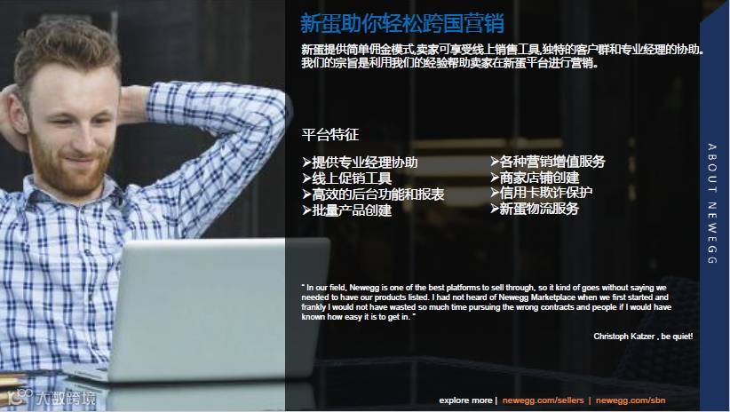 新蛋全球化为卖家提供了一个平台使其能够销售并运送商品到美国外的其他国际市场。目前可以销售到9个国家为加拿大,爱尔兰,英国,
