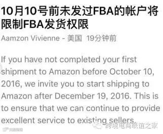 一直没有发FBA的账号的在10号之前没有发过就不能发,等 到12月19号吧!(主要针对北美)