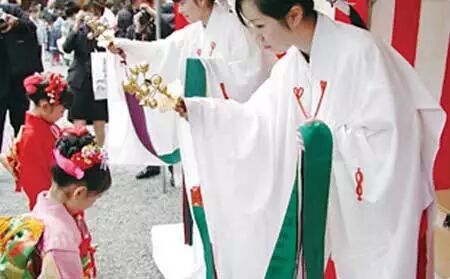 “七五三”是日本特有的一个节日。每年在11月15日这天,年龄达到7岁(女孩)、5岁(男孩)和3岁(男孩和女孩)都需要穿上非常有日本特色的服饰到神社去参拜。
