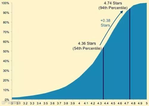 尽管只有0.38星之差,但是影响还是很大,或能让产品排名从第94位上升到第54位。实际上,因奖励撰写的review还可能造就5星产品。