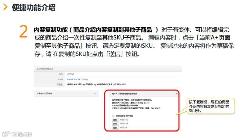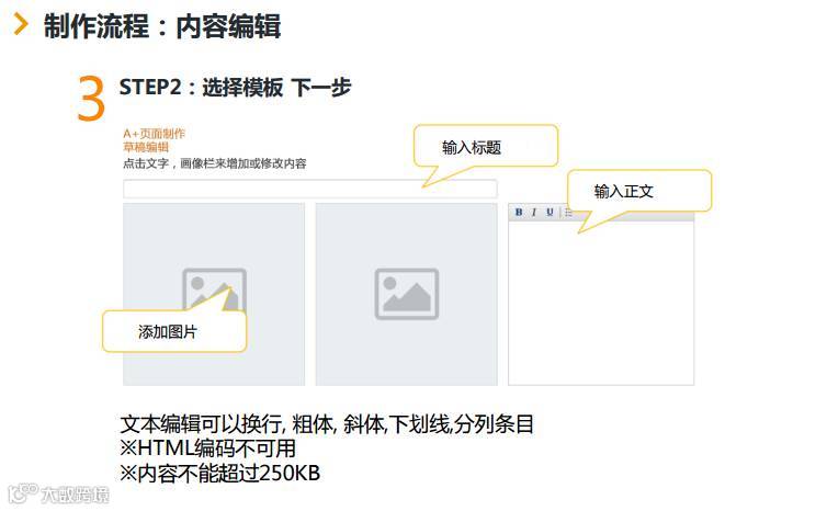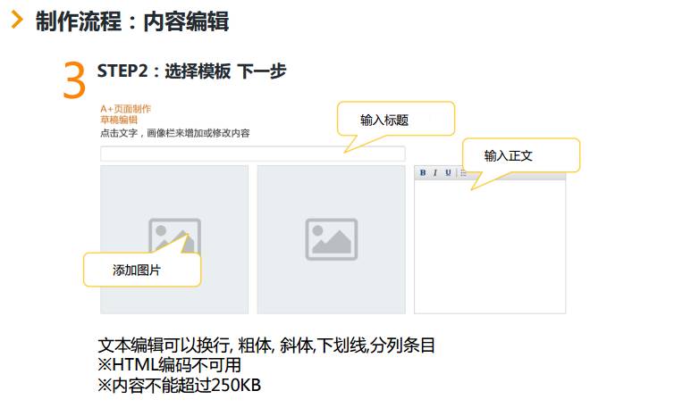 对于已经有其他卖家制作了A+页面的商品,不能再进行A+页面制作。 对于亚马逊自营售卖的商品,或者已经有A+页面的商品,刊载的A+页面有可能 和自己制作的页面不一样。(请通过商品详情页面确认哪种A+页面被刊载了)