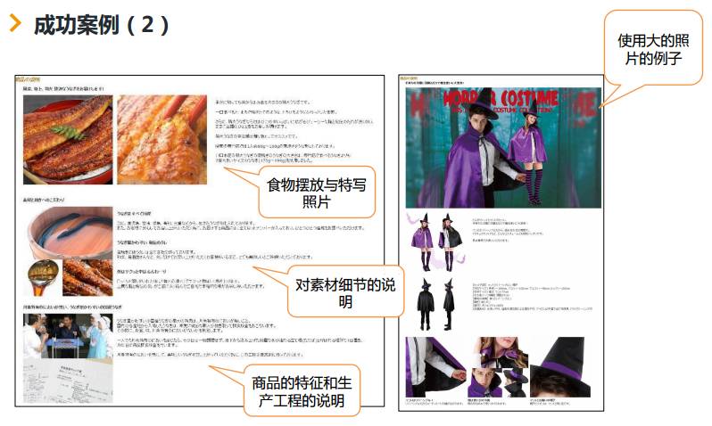创建有效的商品内容Amazon卖家大学 1.基本的想法 • 站在顾客的角度思考哪些信息是必要的,哪些是下订单时的关键信息。 • A+只是商品详情页面的一部分。应当和其他信息结合,提供顾客需要的信 息,并助力于顾客的购买决定。 2 怎样设计 ・提供图象说明文字,以及和文字内容一致的图像 ・聚焦商品卖点,正确简洁填写 ・为便于把握商品的外观,提供多角度拍摄的商品图片 ・为了更准确的传达商品尺寸,提供有参照物的图片