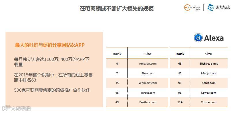SlickDeals.net是一家在线交易网站,主要依靠社区的成员分享信息获得交易。SlickDeals专长于报道电子消费品价格异动,经常对一些产品的价格进行**评估,通过网站可以淘一些特价和便宜货。SlickDeals.net在2011年4月的时候成为了公认的最流行交易网站。