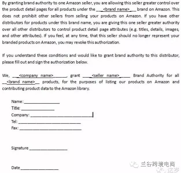 如果不是自有品牌,是代理商的,则需要提供授权书,你同样可以在亚马逊后台做品牌登记,与自有品牌是一样的。
