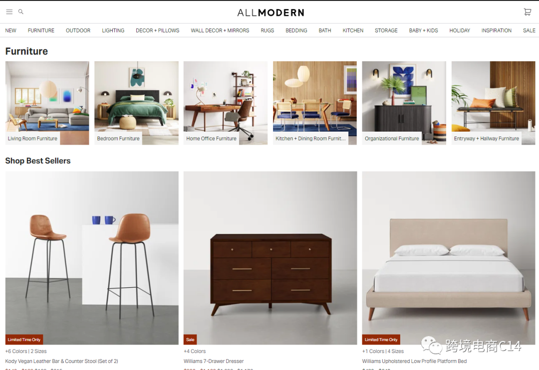 ·历史:AllModern 成立于 2014 年,是 Wayfair 旗下的现代家居品牌,专注于销售高品质、现代简约的家居产品。
