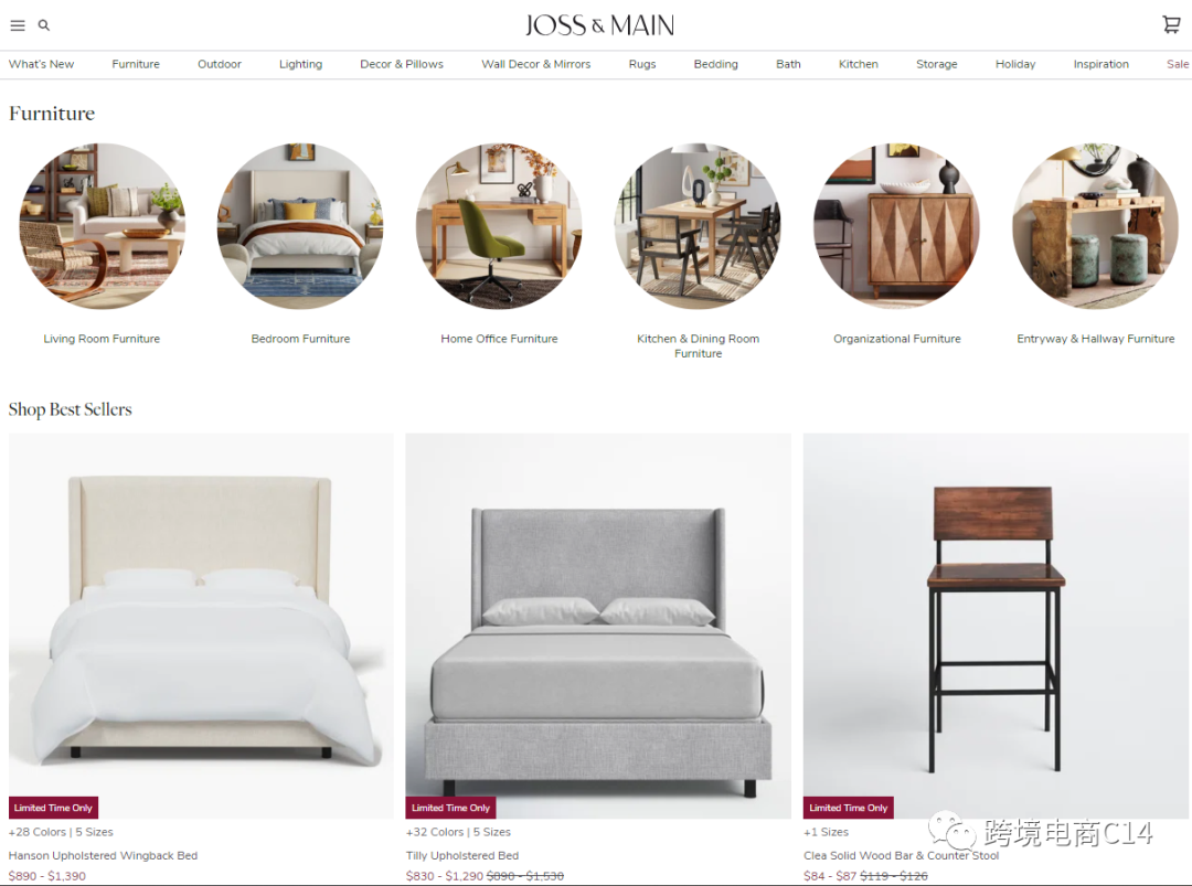 ·Joss & Main 的产品由来自世界各地的设计师设计,风格多变,满足不同消费者的审美需求。Joss & Main 的目标客户群体是年轻、时尚的消费者,希望在自己的家中打造一个独特、时尚的空间。
