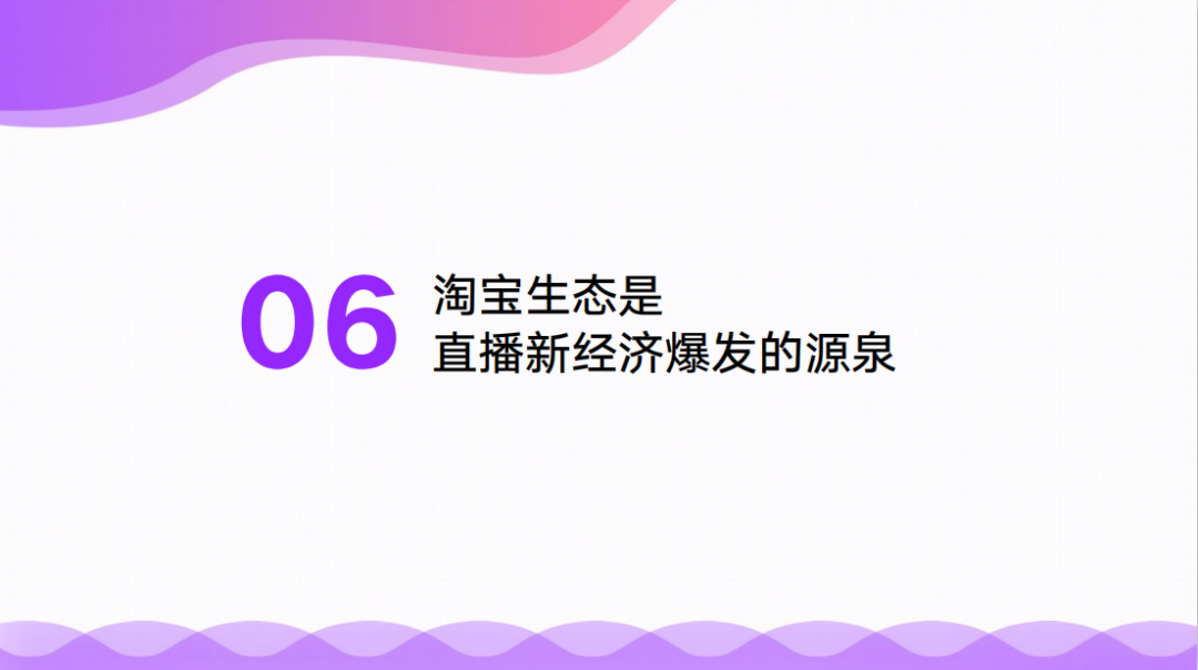 作为首个爆发的新经济业态,淘宝直播用了4年时间,创造了一个全新的产业,推动直播电商进入成熟期。淘宝直播的爆发,表明在新经济时代,商业的核心将从流量变成人。通过有故事、有创意、有温度的人本身,实现新的爆发,淘宝直播新经济是人的新经济。