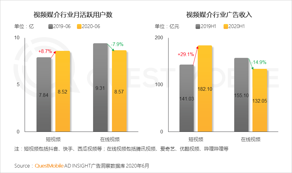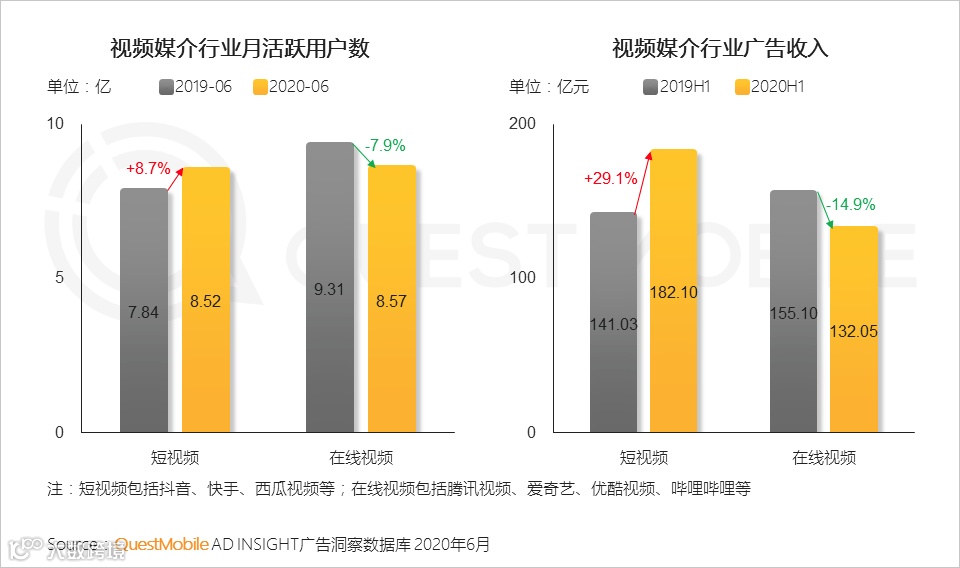 报告显示,短视频行业的月度活跃用户已经达到8.52亿,其时长已经占据全网用户总时长份额近20%,是仅次于即时通讯的第二大行业,并在广告收入上全面超越在线视频行业,全行业收入同比增长30%。