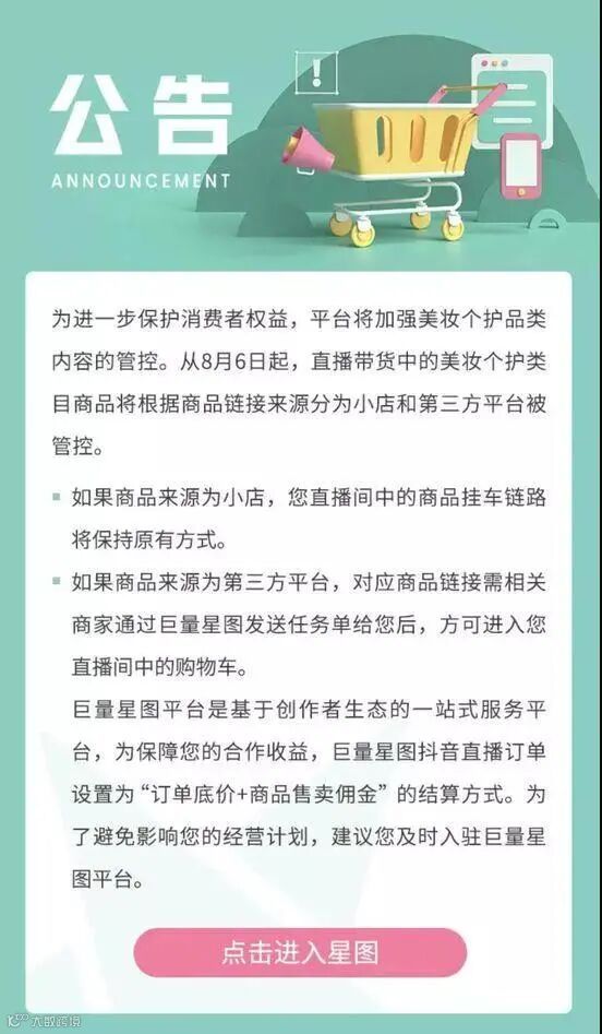 这意味着自明天起,抖音直播中需要跳转链接至第三方平台的美妆产品都将受到管控限制。