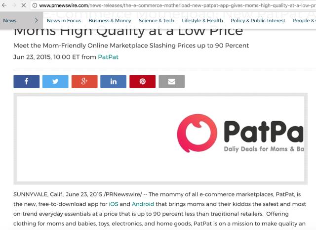 2016年9月,美国Inc.com,HuffintonPost,Workingmoms等主流媒体报道,在美国掀起PatPat热