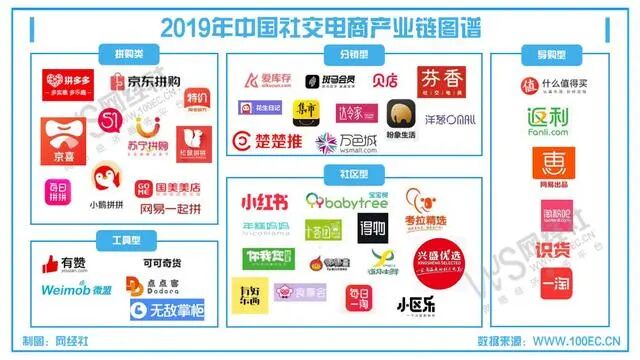 据网经社监测显示,目前社交电商市场主要的玩家包括: