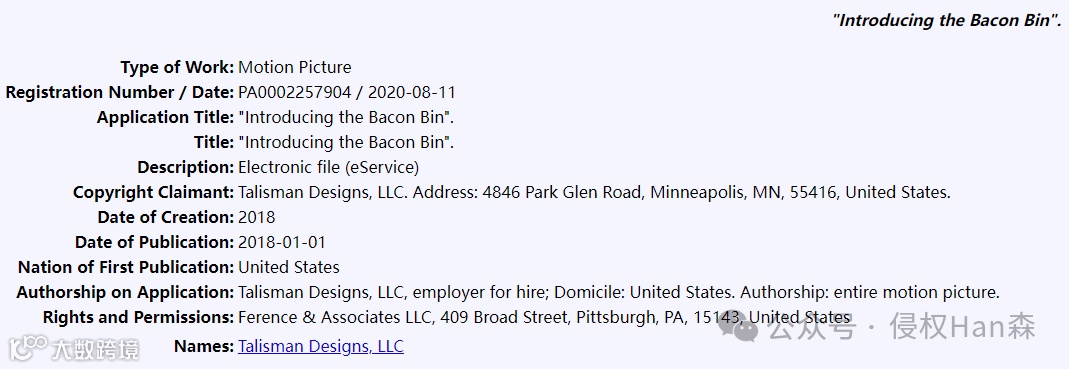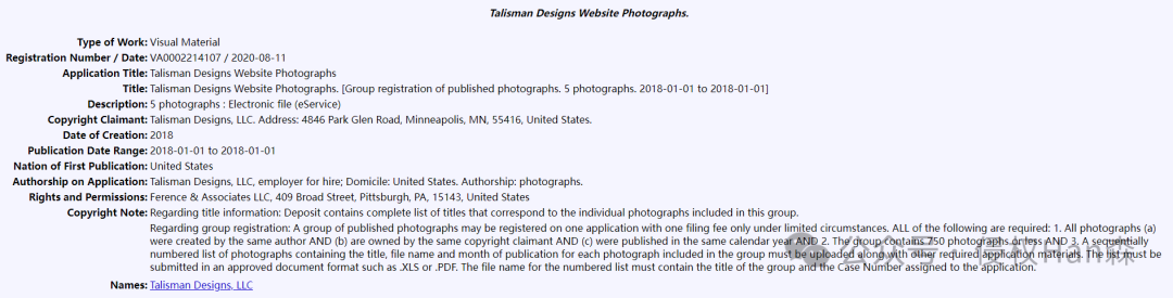 所有人;TALISMAN DESIGNS, LLC (USA)