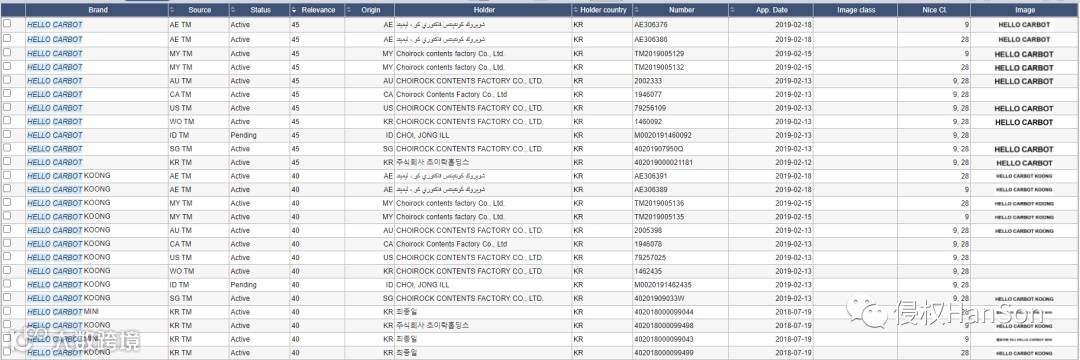 没有搞明白, Hello CARBOT持有人“CHOIROCK CONTENTS FACTORY CO . LTD”就只注册了VN(越南) 韩国也没有注册!!!