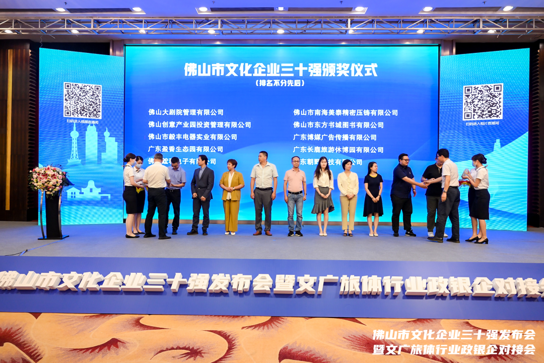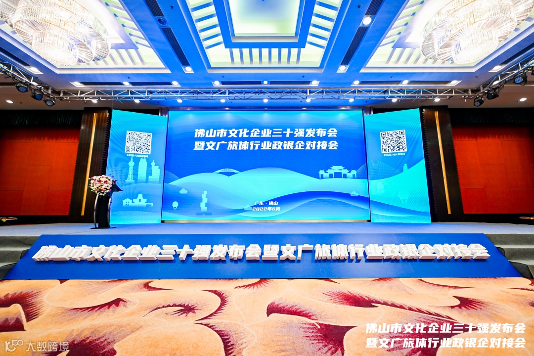 为贯彻落实全国稳住经济大盘电视电话会议精神,推动国家、省、市稳住经济的一揽子政策措施落地落实,有力缓解企业困难,提振从业者信心,助力文广旅体行业恢复发展,6月28日下午,佛山市召开文化企业三十强发布会暨文广旅体行业政银企对接会,开展纾困政策宣讲和金融产品推介,推进政银企沟通对接,会上还发布了“佛山市文化企业三十强”名单。