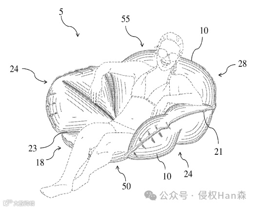 US7818842 (B2)一种可折叠床垫,具有一体式携带袋,床垫在不使用时可折叠到该携带袋中。优选地,床垫是至少部分可充气的以便可漂浮,并且可以具有由可充气部分包围的网状中心部分。可包括固定到位或可拆卸的充气枕头或头枕。袋本身优选地至少部分地由尼龙网材料制成。