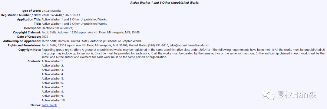 Active Washer 1 and 9 Other Unpublished Works—VAu001484440 / 2022-10-13