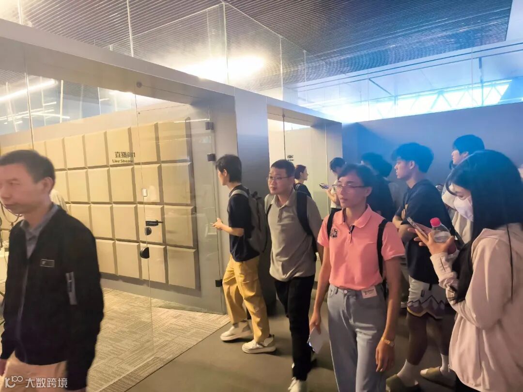 会议过后,由领拓跨境的代表带领各师生参观基地的直播间,了解直播运营流程、设备配置等细节。
