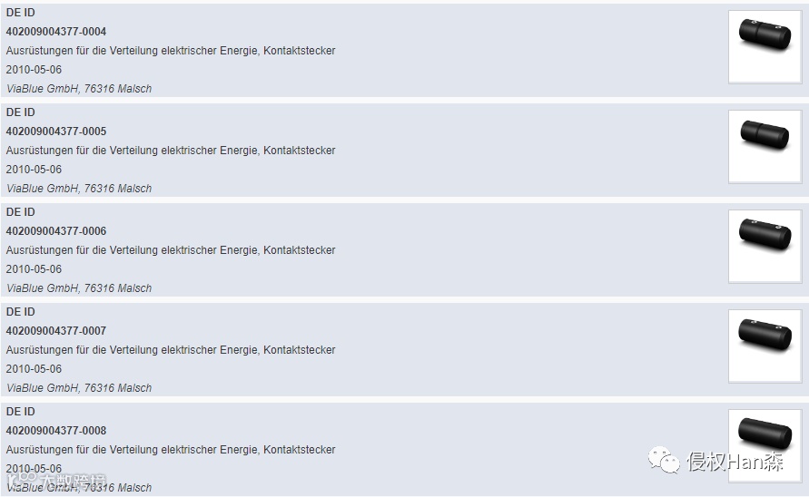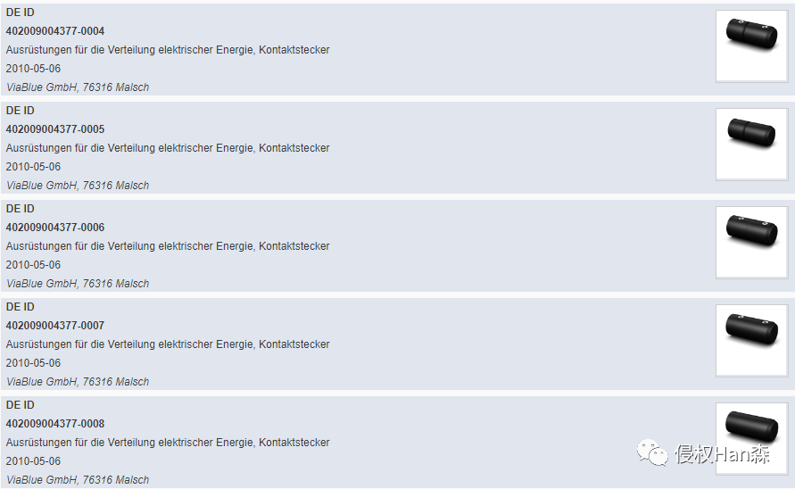 专利号:(DE)402009004377-0013和(DE)402 012003710-0011