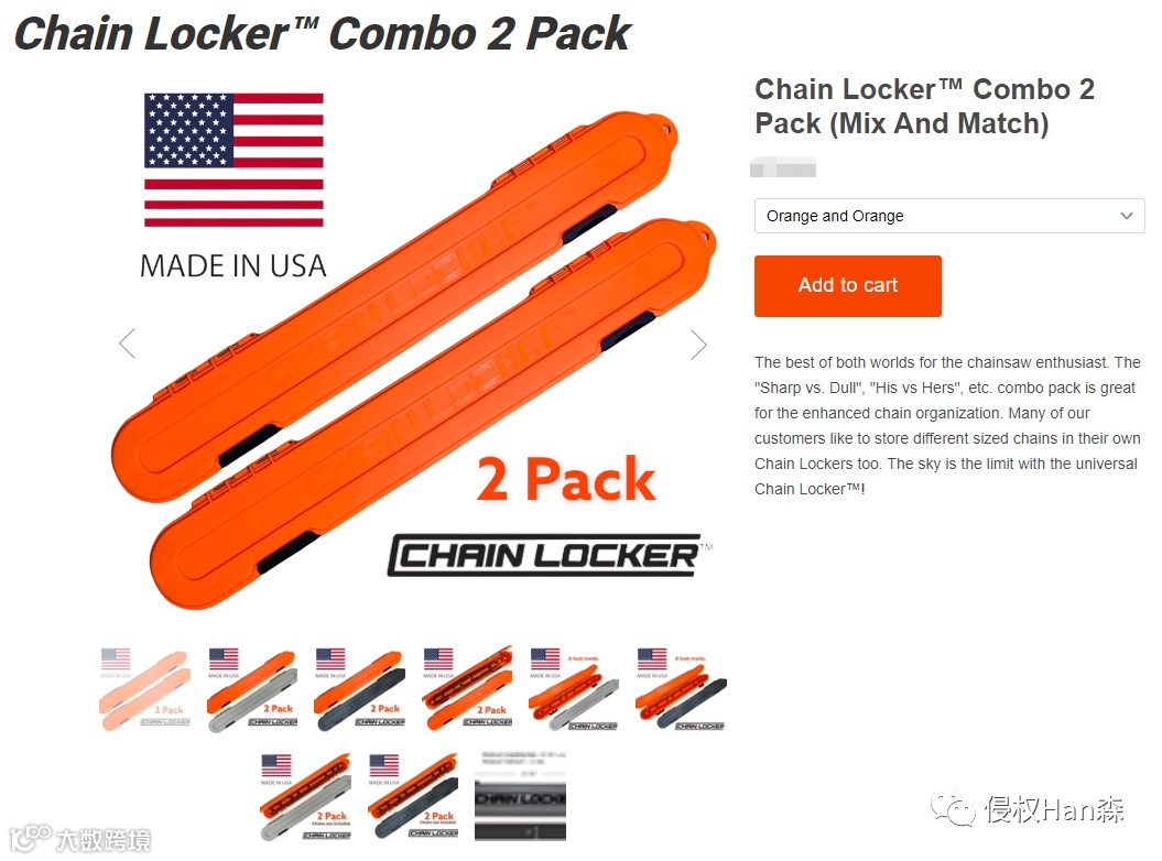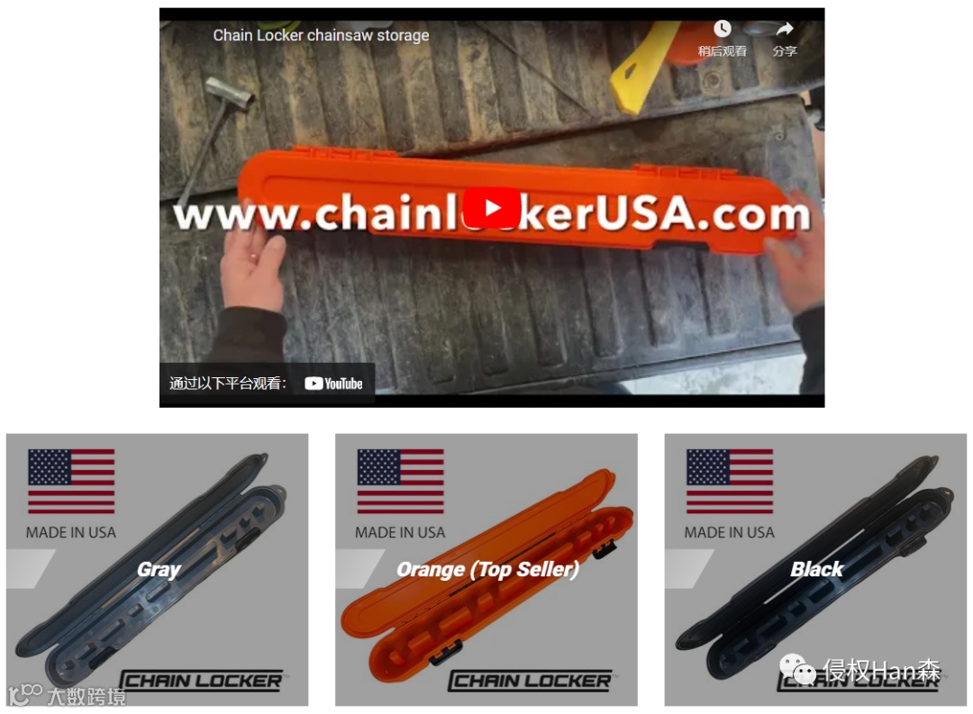Chain Locker 注册北美商标和全球商标。产品销售主要以美国和加拿大北美市场以官网图片版权保护和全球外观设计DM/217216