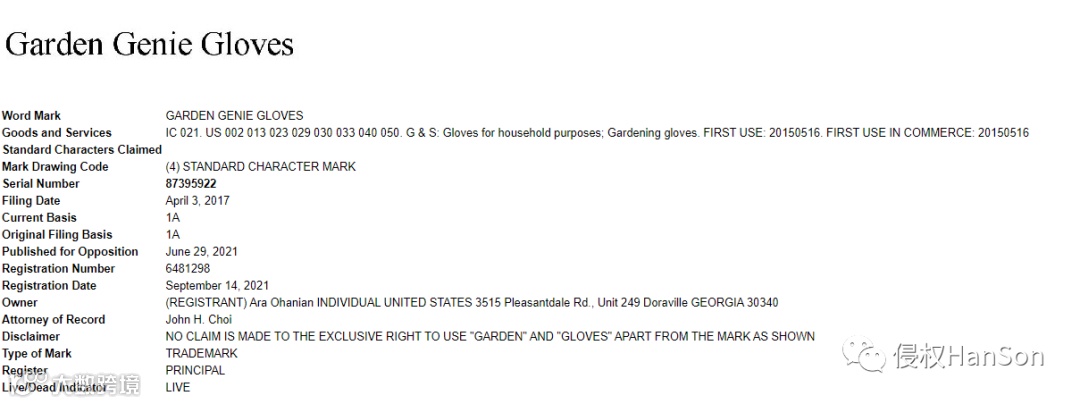 原告投诉品牌:;Garden Genie Gloves 花园精灵手套